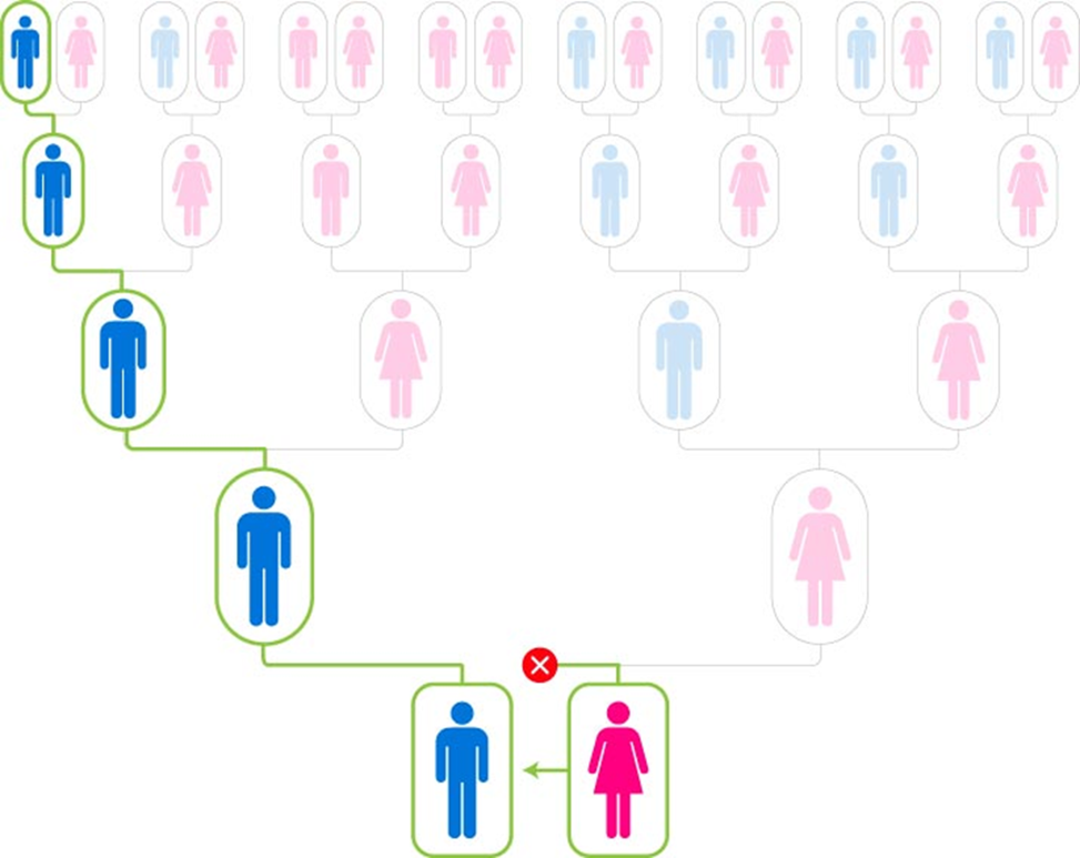 Y-DNA testing is used to help answer questions about relatedness on the paternal male line and is for genetic males. Y-DNA is passed down from father to son. Y-DNA testing can help you discover and verify your direct paternal ancestry by connecting you with other individuals who are descendants of a shared common patrilineal ancestor.